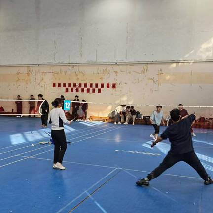 赛前,党委副书记高翠欣老师为此次联谊活动致辞。她寄语在场师生,希望大家能以球会友,在切磋技艺的同时增进两院情谊,在运动中释放活力、凝聚力量。话音刚落,场中便响起了经久不息的掌声,热烈的掌声裹着满场的热气四下散开,驱散了冬日的凉意。这场备受期待的联谊赛,便在这温暖又振奋人心的致辞里缓缓铺展。师生们纷纷拿起球拍,跃跃欲试的神情里满是期待,一场活力满满的角逐即将拉开帷幕。