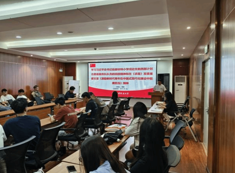 自然资源调查研究院研究生第三党支部邓扬同志为大家分享了习近平总书记给谢依特小学戍边支教西部计划志愿者服务队队员的回信精神以及在《求是》发表的重要文章《激励新时代青年在中国式现代化建设中挺膺担当》精神。邓扬同志详细介绍了谢依特小学的特殊地理位置和学生构成,讲述了志愿者们在艰苦的环境中坚守教育岗位,为促进当地教育事业发展、民族团结进步以及兴边富民和稳边固边所发挥的积极作用。他强调,习近平总书记在回信中对新时代中国青年昂扬向上的精神风貌和强国有我的责任担当给予了高度肯定,勉励广大青年要坚定理想信念、厚植家国情怀、练就过硬本领、发扬奋斗精神,到祖国和人民最需要的地方发光发热,为中国式现代化建设贡献青春力量。