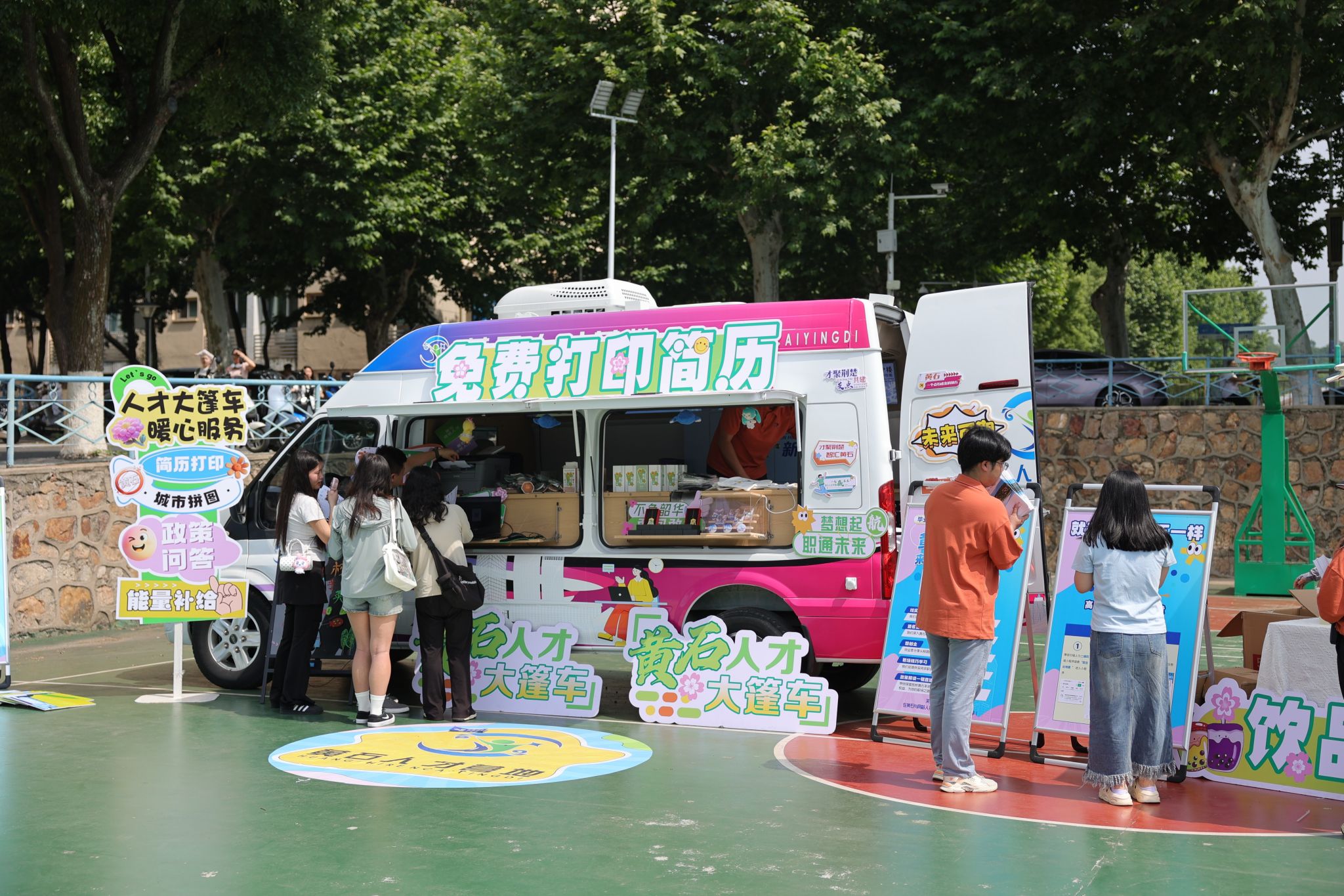 黄石市在现场设置了人才大篷车,开展城市介绍和引才政策宣传,并为学生提供免费简历打印等暖心服务。
